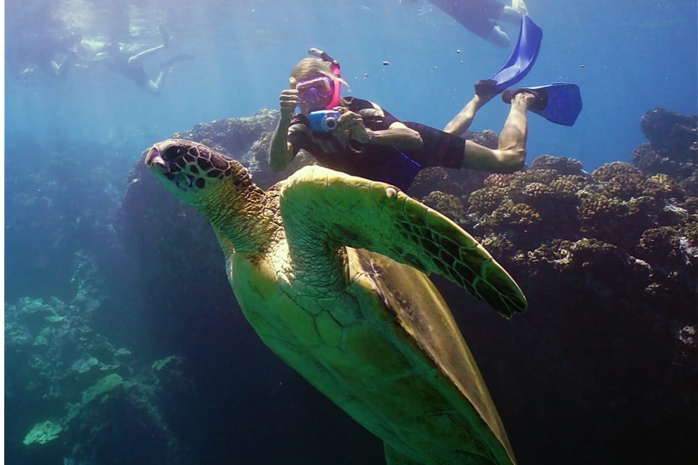 Obviously pictures are a must on your Molokini snorkel adventure. How about underwater pictures? Look no further. We rent the high quality Olympus Tough underwater digital camera right on the boat. At 16 megapixels, these cameras offer unlimited video and still photos and are excellent at capturing fish, turtle and family members for later display on your Facebook page. $40 Rental Fee, includes DVD with all your pictures and video.