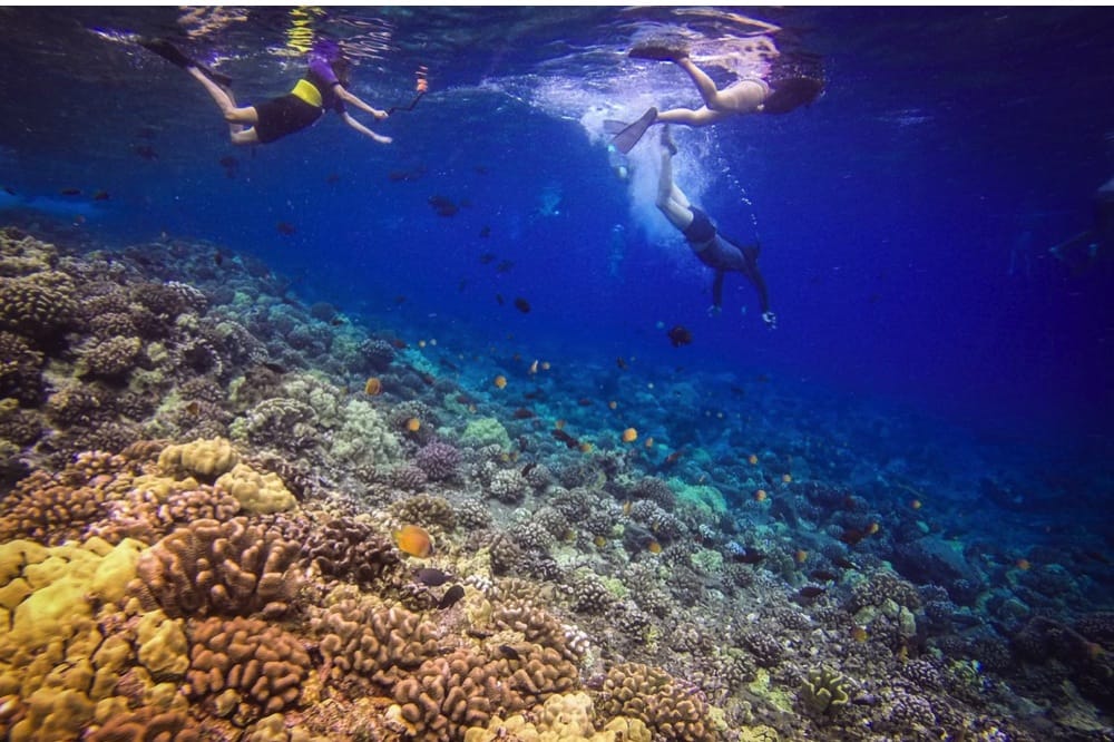 Molokini is Maui's #1 snorkeling destination. Its crystal clear water, beautiful fish and unique scenery make Molokini epic for snorkeling and diving activities year around. Molokini is located 3 miles off the coast of South Maui. It is a Hawaii state marine life conservation district, home to more than 250 species of fish, many of which are endemic to this location. Manta rays, eels, harmless white tip and gray reef sharks also frequent the area. Molokini is also a bird sanctuary.