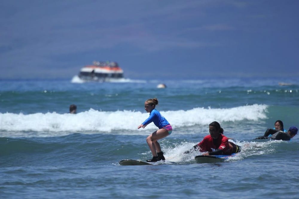We specialize in first time and beginner surf lessons for people who are unsure about trying surfing. You'll start off your Maui surf lesson on the beach practicing the basics and fundamentals of surfing. As soon as you have the basics down, you'll be in the water surfing the waves of Maui!