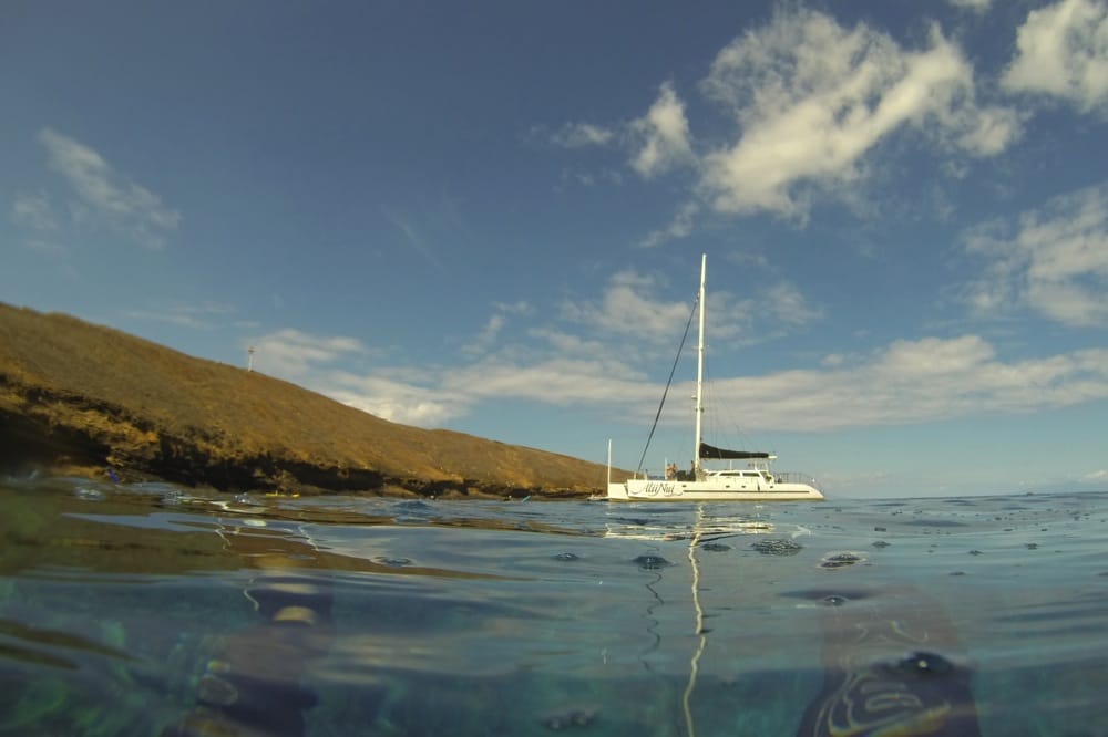 Molokini is an ancient crater located inside a marine reserve. Expect spectacular water clarity and a pristine coral reef. Rated one of the best snorkeling spots in the world, this reef has a variety of beautiful reef fish and animals. Occasionally we see dolphins, Whales, Manta rays, and Hawaiian Monk seals. December through the end of April is a great opportunity to see Humpback whales in the National Marine Sanctuary.